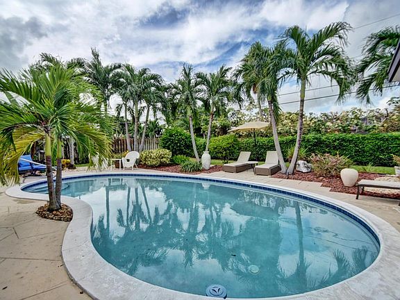 This beautifully furnished 3 bedroom, 3 full bath + den home is in one of the most desirable neighborhoods in east Boca. The lush landscaping in the fenced in yard provides privacy around your heated pool. This home is so inviting with an open floor plan, new appliances, new porcelain wood-look tile throughout. About 1 mile to the beach! Painting & white mirror in the den is excluded. NO POPCORN, NO CARPET! Close to beach, downtown, shopping, restaurants, golf, tennis, Mizner Park, and Boca Resort. Listed by Champagne & Parisi Real Estate