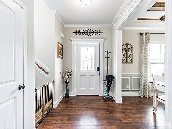 Superb four bedroom home w/three full baths in Knolls at the Neuse. Open floor plan w/dining room offers wainscoting, trim coffered ceilings. Kitchen w/granite counters, tile backsplash, dbl ovens and island. Eat in nook off kitchen. Downstairs guest suit. Screened in patio adds living space w/o the bugs! Large bonus features a wet bar. Two more secondary bedrooms round out the upstairs as well as a large owner's suite with sitting area, WIC and large bath. Firepit and fenced yard create a backyard oasis.