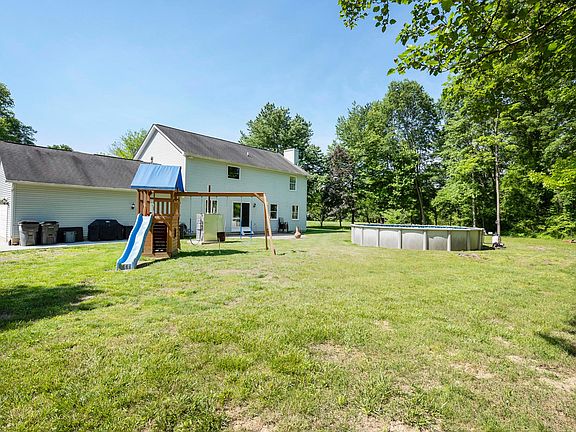 Showings to begin June 12. Country Living at its best! 7.35 acres! 2 Story home with a low maintenance yard and tons of woods! Featuring lots of upgrades! New Paved driveway, complete with gorgeous stamped concrete sidewalk leading up to the house. Walk into a spacious foyer. Original hardwood floors have been refinished as well as brand new hardwood floors throughout the first level. Dinning room right off the kitchen, with additional eating space. Tons of natural light throughout! Great open concept from the kitchen, eating space and living room. First floor laundry, half bath and cozy office or optional 4th bedroom.Upstairs you will find 3 bedrooms & 2 Full bathrooms. Owners suite features a huge walk in closet, owners bathroom, & beautiful lighting. 2 good size bedrooms & spacious loft