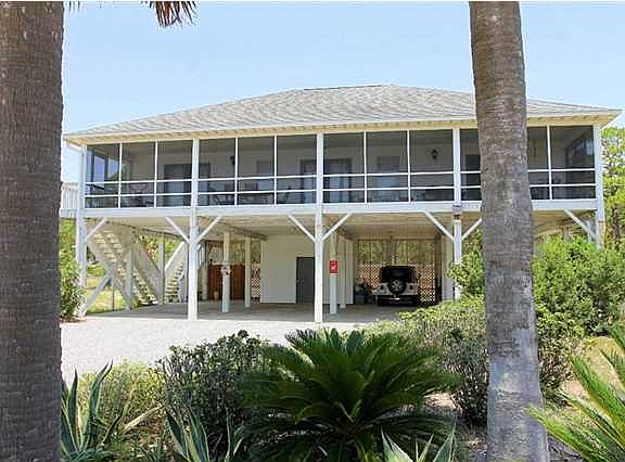 1st Tier with outstanding views of Gulf that's been beautifully maintained. The open concept of this Beach home really takes advantage of the views and the screened porch expands the main living area for you to enjoy the sunsets and entertain friends and family. 3BR/2BA with solid surface floors through out the house. Home features a new HVAC, new hot water heater, new privacy fence, and new hot and cold outdoor shower! Furnishings, cell tower booster and Golf Cart come with this listing making it rental ready. Qualifies for FEMA! Deeded beach access.