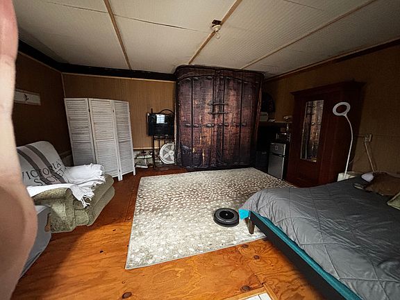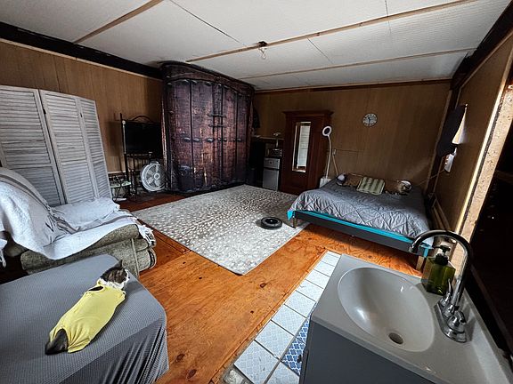 16x16 studio apartment. Furnished. No shower. Shower is in house on property, renter has access when landlord is home and can use until nine pm. Detached apartment does not have shower. Bathroom would be in shared space. Mini stove Sink, running water in room. Portable toilet in room. Private driveway. Spacious. Storage space. Mini fridge. Bed, armoire, lighting, recliner are furnished and all furnishings and bedding must be left when renters leave. Monthly lease. Renter pays partial garbage, water and power monthly. If renter ever is late on utilities, renter forfeits security deposit. One small dog and one small cat allowed, must be kept in apartment. Shower facilities are closed after nine pm as they're in the landlords home on the property. After three months of rent payments, washer and dryer combo will be put in apartment.