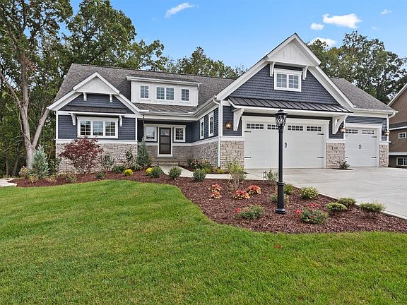 Now complete is this new home by Aldred Homes. Located in the exclusive Sagamore-Woods subdivision, this 1.5 story home is on the perfect private lot. With a walk out basement, woods behind it and a back yard big enough for a pool, the location is ideal. Main floor master, open kitchen/family room concept with natural wood flooring. The kitchen features a walk-in pantry and quartz counter tops, the dining room leads to a huge screened porch. Upstairs are 3 bedrooms, 2 full baths and a special flex room that can be used for anything. The finished basement offers another bedroom and full bath, wood floors, a full size bar and nice sized rec room. A 3 car garage, and a fully landscaped lawn with sprinkler system make this new home move in ready.