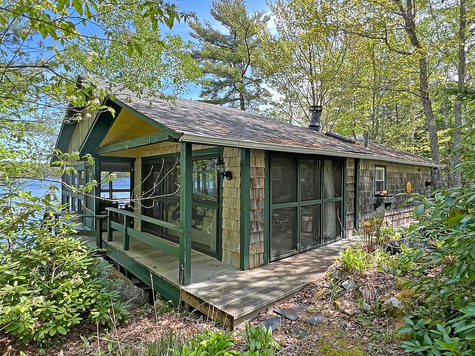 This charming lakefront cottage, mere steps from the water's edge and accompanied by a bonus guest house, offers ample space for family and friends. The tranquil property boasts a waterfront cottage with breathtaking views from multiple rooms, a first-floor master bedroom complete with a private bathroom, a fieldstone fireplace, a large screened-in porch, and a front deck sitting area. The separate guest cottage features a 2nd floor master suite, 1st floor laundry & 1/2 bath, an open kitchen & living area, and the option for year-round living if desired. The beautifully landscaped grounds include 162' +/- of shoreline, providing a peaceful retreat to unwind and savor the surroundings.