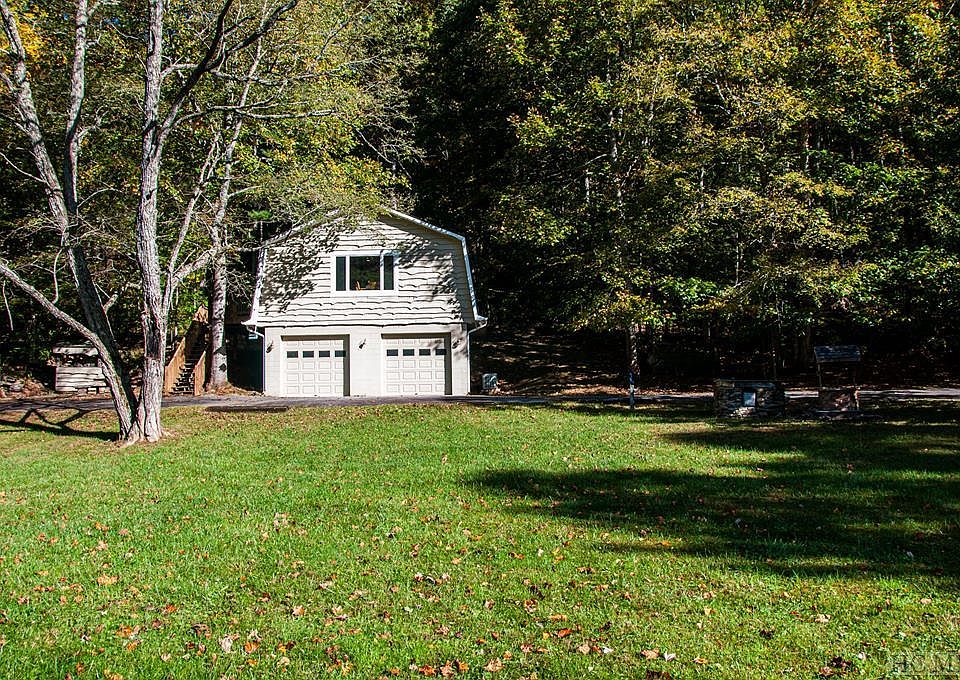 299 Western Rhodes Dr, Highlands, NC 28741 ; This mountain home with beautiful Buck Creek Frontage, is on 1.22 acres in the Blue Ridge Mountains of North Carolina. The adjacent 1.22 acre lot is also available (MLS# 92384). This Rare property features include a level yard, 2 bedroom, 1 bath and 1 half bath Cottage Apartment with 2 car garage, and private mountain view balcony. With 2 bedrooms & 1 baths, the house is great for seasonal or year-round living, or as a guest house should you decide to build a main home on the property. The living room features are gorgeous mountain views & natural light. The property has a septic tank permit for six bedrooms to accommodate future buildings. An outdoor Creekside seating area with fire pit offers a comfortable place to enjoy the beautiful mountain views and the calming sounds of the creek. There is plenty of room for a garden.