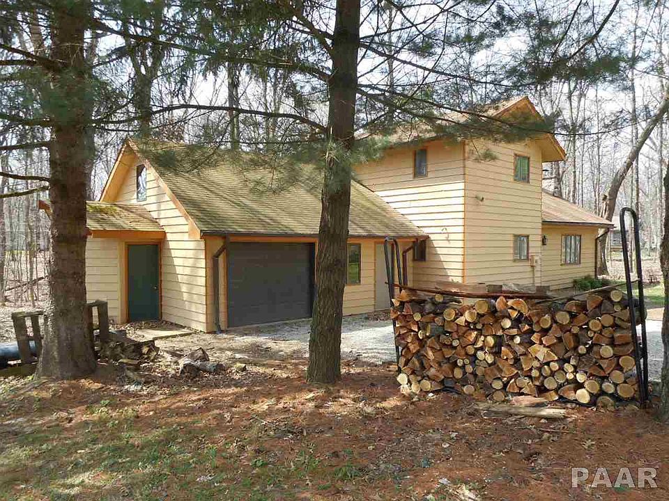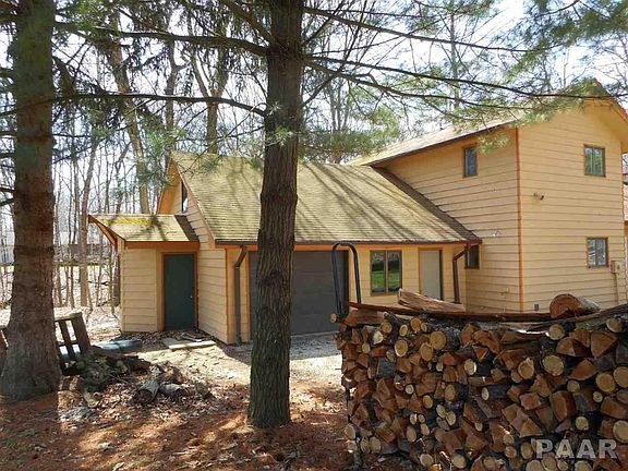 Enjoy nature from this spacious 4BR 2BA cabin on beautiful wooded double lot at Lake Wildwood. Great location by pool, main beach, lodge and marina. Open concept with large great room, vaulted ceilings, gorgeous floor to ceiling Wisconsin stone fireplace and open kitchen with breakfast bar. Sliders to deck, plus over sized garage with loft. Lots of updates in last couple years including beautiful modern tile flooring in great room, carpet, new main floor laundry, bath updates, paint & appliances. Great weekend getaway!