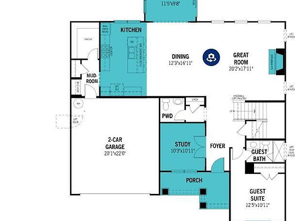 The 3,539 square foot Lassen floorplan offers versatile, thoughtfully designed space in a pleasant configuration of shared and private living areas. The first floor has its own full-featured guest suite and 1.5 baths on the 1st floor in addition to a study and large, combined Great Room, dining room and gourmet kitchen with breakfast bar. This plan also has an additional sunroom off the back of the home. Upstairs, a large loft makes for excellent gathering space. The large, private owner's suite has two walk-in closets. Bedrooms 2 and 4 also have walk-in closets, and there is an additional storage room near the stairs. Bedroom 2 has it's own private bathroom.