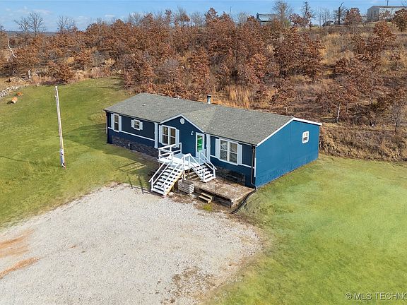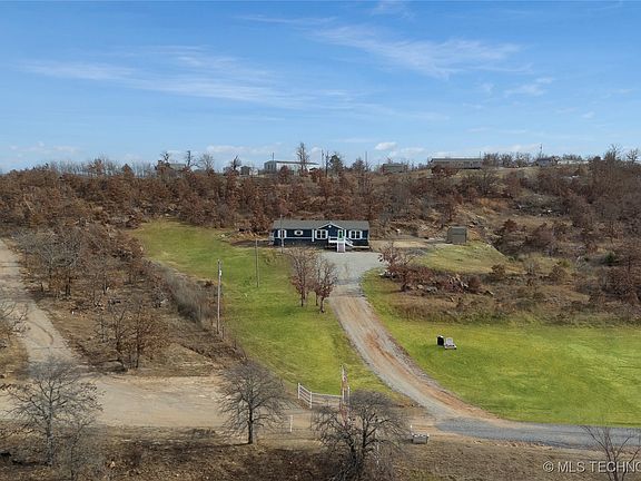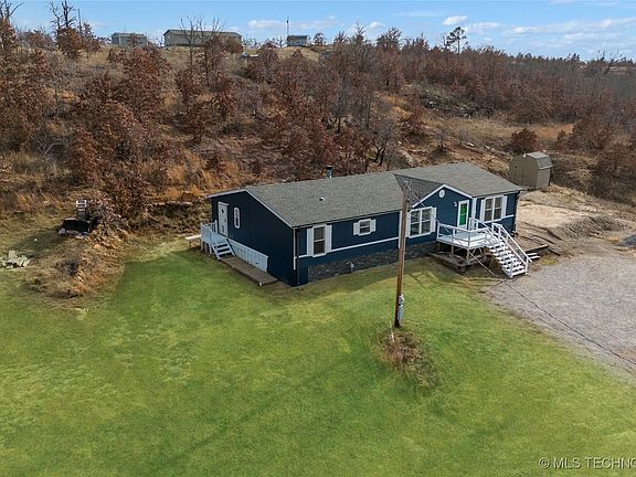 Nestled on 2.4 acres at the end of a quiet dead-end street, this private and cozy 3 bedroom, 2 bath home combines seclusion with convenience, being less that a mile from the main road. The open kitchen boasts an island, pantry, ample cabinets and generous counter space - the refrigerator is included! The split floor plan enhances privacy, featuring a spacious dining area, a living room with a fireplace and a large primary suite complete with a walk-in closet. Updates include a new roof in 2023, fresh paint in 2024 and updated doors and trim. Relax on the front deck, perfect for sipping coffee, watching deer or enjoying breathtaking Creek County sunsets. The property includes a storage shed, no HOA or restrictions and offers plenty of room for animals, ATVs or simple soaking up the peace and quiet.