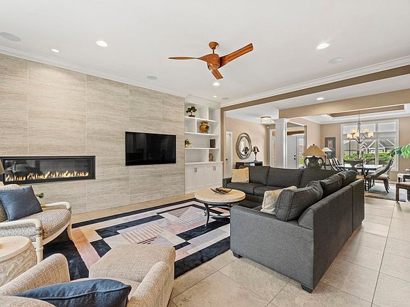 Discover tranquil living in this spacious villa ranch nestled in a quiet cul-de-sac. This home features three bedrooms, two-and-a-half baths, and just over 3,000 square feet of elegantly designed living space. The open concept layout invites you in, offering plenty of natural light and a seamless flow between rooms. The open kitchen is a chef’s delight with modern appliances, ample storage, and plenty of built-ins. The spacious living areas are perfect for both entertaining and everyday family life. The master suite is a serene retreat, complete with a walk-in tile shower and generous closet space. Two additional bedrooms provide comfort and flexibility, ideal for guests or a home office. Step outside to your own private oasis. The outdoor living area features a pergola that includes automatic windscreens and a hot tub, perfect for relaxing or entertaining friends and family. The beautifully landscaped yard backs onto a scenic pond, providing a peaceful backdrop to your daily life. Additional features include a three-car garage that feature addition storage closets with built-in shelving and cabinets and plenty of storage throughout the home. Most of the appliances remain, making this property truly turnkey.
