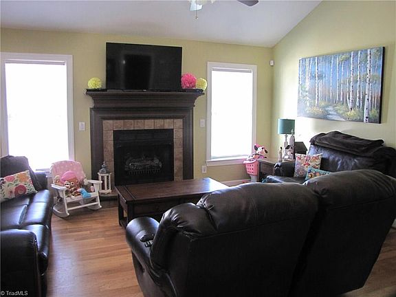 Spacious 4BR/2BA with bonus room. Open floor plan perfect for entertaining with vaulted ceilings, fireplace and extended countertop for extra seating. Upgraded wood and tile flooring. Fabulous master suite with trey ceiling, walk in closet, jetted tub, separate shower and double vanity. Upgraded kitchen cabinets with SS appliances. Large corner lot with new patio area and storage building. Don't miss out on this beautiful Randolph County home in Wheatmore High School area!