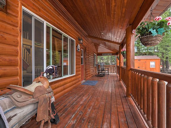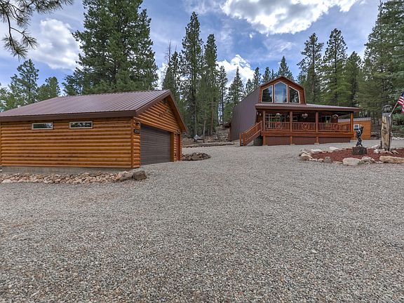 This immaculate cabin comes ready to go with a new roof, large new two car garage, additional shed to start living the mountain life right away. Bring your close friends and family - this cabin with 3 bathrooms is perfect for guests. You'll love the adorable bunkhouse for extra sleeping space. True cabin feel with open loft. Large recent master suite addition on the main floor and already plumbed for a propane stove. Propane stove in living area provides heat and atmosphere. New granite counter tops and newer appliances in the eat in kitchen with plenty of prep space. Newer stackable W & D in laundry on main floor. Circle driveway with plenty of room for your guests to bring an RV. Come enjoy the fabulous outdoor entertainment areas this property has to offer with over 500 sq feet of cover