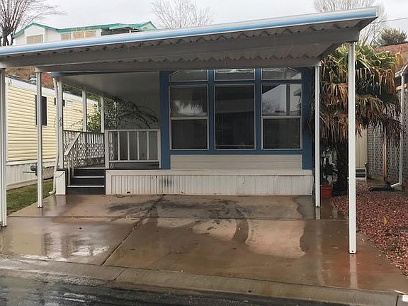 Park Model located in desirable Rio Virgin Estates, 55+ community. Community park down the street. Community clubhouse. This two bedroom is move in ready it comes with washer and dryer. Has cathedral ceilings, new high-grade flooring, new paint, private yard, with patio, storage shed, two-car covered parking, and a big covered front porch. Close to shopping, hospital and to interstate.