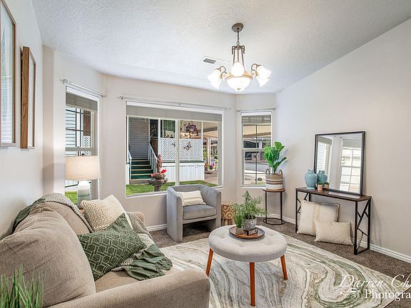 This adorable 55+ community home offers a comfortable and inviting living space that is thoughtfully designed to maximize functionality and comfort. The open-concept living area boasts ample natural light, creating a bright and airy atmosphere. The kitchen features plenty of storage space, and the adjacent dining area is perfect for entertaining guests or enjoying meals. Both bedrooms in this home are cozy, providing a peaceful retreat. The master bedroom includes an en-suite bathroom for added convenience, the second bathroom is easily accessible from the common areas. The property also has a large storage shed. For just a $90/month HOA, this senior community includes a Clubhouse, Common Area Maintenance, Garbage, Pool, Sewer, Water & Full Yard Maintenance. NO RENTALS ALLOWED.