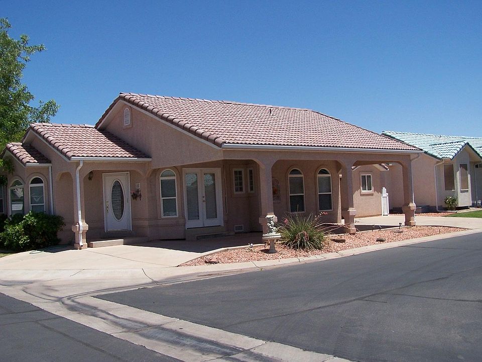 You MUST BE 55 or OLDER to live in this cute permanent stucco home located in the 55+ older community of Rio Virgin Estates. It features 2 bedrooms, 2 baths, and is apprx. 900 sqft! The home shows spotless, light, bright & open! The kitchen features a breakfast bar counter with bar stools, wood style flooring, solid surface counters, black appliances, including electric cooktop & side x side fridge, micro too! The living room has a high ceiling, lots of windows and a spacious eating area also. The master bedroom has mirrored closet doors and an attached master bath with shower. The guest bedroom has a ceiling fan and is located close to the 2nd bath. The hallway has a stackable washer and dryer for ease of use also!! There is extra b covered parking close by the front entrance. There is also additional parking in the driveway area in front of a separate stucco storage area - which has locking doors for each storage room. u One room has a sink and a small window AC unit to keep you cool when you want to wash your hands! There is also a "pull down ladder" with access to additional storage in the attic area outside! Central A/C, auto sprinklers & MORE!! Available NOW, Call for more info, or to arrange showing. You must be 55+ to live in this community Sorry, no pets of ANY kind OR smokers (please don't ask) the Security Deposit is $1,200...owner prefers 1+ year lease. Owner pays HOA fees, tenants pay all utilities.