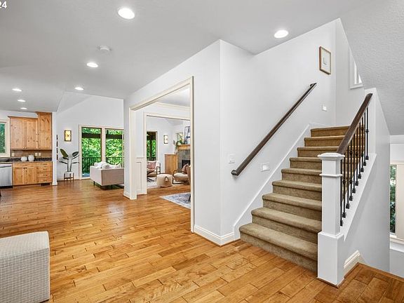 Welcome to your private oasis in the heart of Lake Oswego. This 2010-built home provides a blend of modern elegance and serene seclusion, in a highly desirable location. As you step inside you’ll be greeted by an open and inviting feel, high/vaulted ceilings, and an abundance of natural light, creating a bright and airy ambiance throughout. The main level open-concept living area and covered deck is ideal for both everyday living and entertaining. The gourmet kitchen is equipped with a spacious island and high-end appliances, featuring a 48" JennAir range/hood, and ample counter space. Step outside to a tranquil setting as this home backs up to a lush green space, providing a picturesque backdrop and unparalleled privacy. Enjoy the beauty of nature from your backyard, or take advantage of convenient access to nearby Iron Mountain and Springbrook parks, walking trails, and lake access via four lake easements, for endless outdoor adventures. With its blend of modern amenities, convenience, and natural beauty, this Lake Oswego gem is the perfect place to call home. OPEN HOUSE SUNDAY 9/8 9AM-11AM.