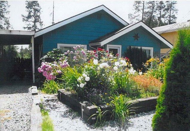 Warm, inviting cottage with large living room and den. Country kitchen and dining area, two bedrooms, full bath, laundry room, storage room, covered porch and attached carport. House has recent roof, insulated windows, updated electrical, and insulation. Cottage-style landscaping includes: assorted edible berries, roses, flowering perennials, and shrubs. Back yard is fenced. (Internet 6299198.)