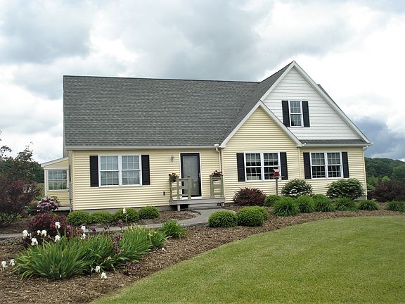FOR SALE BY OWNER: Call Jim 585-752-8847. Immaculate! Scenic country setting on 4.5 acres! Move in ready... easy commute access to RT 81. Close to schools and fire station. Additional 800 sq ft of unfinished potential 2nd floor space. Open concept, 3 Bedroom, 2 Full Bath, Master Bedroom with En Suite, Hardwood Floors throughout, High-end gas Convection Oven/Range with Stainless Hood, Built-in Stainless 3 Door Refrigerator/Freezer, Stainless High Efficiency Dishwasher, Stainless Microwave, Heil High Efficiency Central AC & Gas Furnace, High Efficiency Bradford White Gas Water Heater, Water Softener (owned), Filtered Reverse Osmosis Drinking Water, 30 yr Architectural Shingles, Perennial and raised garden beds. Custom Chicken house with attached greenhouse. Garden shed. Established asparagus, blueberries, raspberries, grapes.