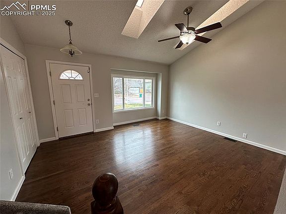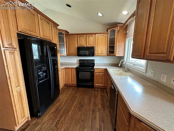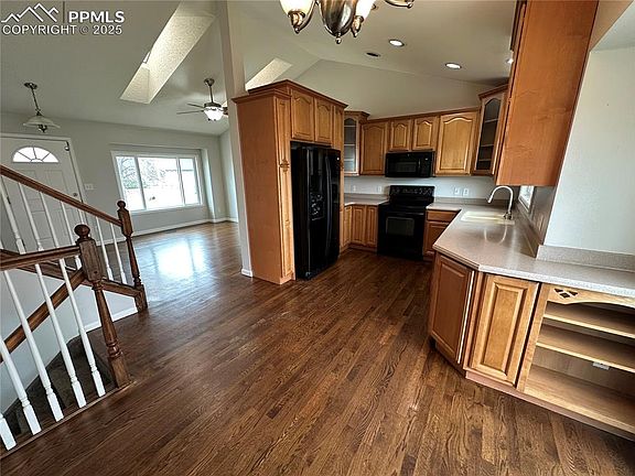 Welcome to Your Next Home in Coveted D-20! Located in one of Colorado Springs' most sought-after school districts, this 4-bedroom, 2.5-bath gem blends comfort, functionality, and location. Step inside to soaring vaulted ceilings and an abundance of natural light that highlight the open layout. The kitchen is well-appointed with warm maple cabinets, Corian countertops, and plenty of space to cook and gather. Upstairs, you’ll find three bedrooms and a full bath, accessible from both the hallway and the primary bedroom. Unwind in the jetted soaking tub — the perfect place to relax after a long day. The lower level features a cozy family room with a brick-accented fireplace, ideal for cool Colorado evenings, half bath conveniently located off the garage entrance. The basement is where you will find the fourth bedroom with attached bath. Enjoy the outdoors with a beautifully landscaped backyard that backs to open space! Entertain or unwind on the stamped concrete patio or elevated wood deck. Bonus: there's additional side parking for your RV, boat, or toys. This home is move-in ready and waiting for you to make it yours.