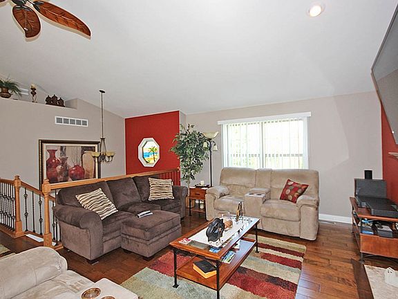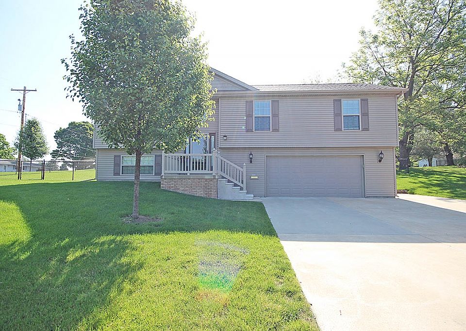 Bi-level home on a corner lot with 4 bedrooms and 2.5 bathrooms. Open concept living room, dining room and kitchen with engineered hardwood flooring, cathedral ceilings, gas fireplace and kitchen island that seats four. Master suite has large walk in closet and master bath with double sinks, walk in shower and separate toilet. Additional bedroom and half bathroom on the upper. The lower level has two more bedrooms and another full bathroom with 18" tile and granite counters. Entertain outside on the deck or watch the kids play in the partially fenced in yard. Call today for a showing!