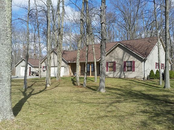 Come take a look at this nature lovers paradise! Just 35 minutes from Columbus. Beautiful 3 bedroom 2 bath home on just under 8 and a half acres. House has 2 car attached garage and an additional 24x24 garage. House interior was just re-painted. Electric heat with a pellet burning stove in the living room. Remodeled hall bathroom with beautiful tile work. Roof just redone in 2017. House sits on a massive basement with extra high ceilings and plenty of extra storage. Mostly wooded with a hidden paradise at the rear of the property with a nearly one acre pond. The pond is stocked with mature bass, catfish, and bluegill. Water is kept crystal clear with a windmill powered aerator. Property is a wildlife haven surrounded by acres of corn field.