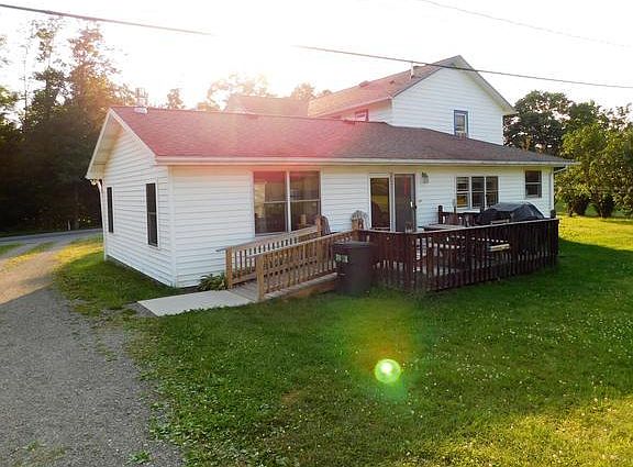 A spectacular country home with acreage. This five bedroom, two bathroom home has a great layout starting with a large living room with a gas fireplace. The dining room and kitchen both feature hardwood floors. There is also a breakfast room off of the kitchen. A bedroom and full bathroom round out the first floor. The second floor has four additional bedrooms and another full bathroom. The two story, two stall garage measures 24x40 that gives plenty of room for a workshop or could be used as a barn. The second floor is currently used as an office and storage area. The land consists of approximately 44 wooded acres of standing, mature timber, some of which is ready to harvest. There are approximately 22 acres of farm fields and pasture land mixed in. This would make a great small farm. Also enjoy the orchard and breathtaking views. Call today for a showing.