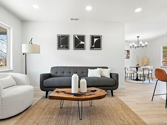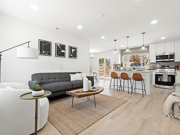Welcome to this beautifully updated 3-bedroom, 2-bathroom home nestled in the desirable University Hills neighborhood! Perfectly positioned on a spacious corner lot, this gem offers the ideal blend of modern comfort, convenience, and stylish design. Step inside and be greeted by an inviting open-concept layout, filled with natural light and showcasing sleek finishes. Fresh paint, modern baseboards, and luxury vinyl plank flooring flow seamlessly throughout. The stunning kitchen features an island with quartz countertops, contemporary cabinetry, Samsung stainless steal appliances, stylish black fixtures, and elegant tile backsplash. The convenience of USB outlets are thoughtfully integrated throughout the home, perfect for todays lifestyle. One bedroom is in one side of the home, while on the opposite side you find your primary suite and a second bedroom creating a perfect separation between living spaces. Both bathrooms have been thoughtfully designed. The primary suite boasts a luxurious five-piece en-suite bath, complete with a soaking tub, glass shower doors, slick dual vanities, and elegant tile work. A sliding glass door leads directly from the dining area to your private outdoor patio—ideal for seamless indoor-outdoor living. Enjoy the newly poured concrete patios and walkways, great for outdoor gatherings and weekend BBQs. The fully fenced backyard provides a secure space for pets and play. The professionally landscaped front yard with low-maintenance design adds great curb appeal, while modern sensor exterior lighting enhances both security and style. The oversized two-car garage offers ample storage space and parking. Additional upgrades include a brand-new roof, new gutters, new siding, front yard sprinklers, new water heater, new AC unit and new furnace. Located near I-25, top-rated schools, parks, popular restaurants, and shops. Schedule your private showing today and experience University Hills living at its finest!