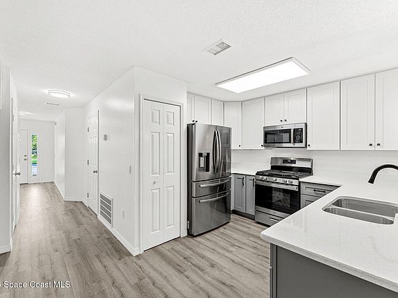 WELCOME HOME to this MOVE-IN ready and beautifully UPDATED 3-bedroom, 2.5-bathroom townhouse located in the heart of Rockledge, This spacious residence features BRAND NEW LVP flooring throughout, FRESH INTERIOR PAINT, updated light fixtures and a FULLY RENOVATED KITCHEN -complete with newer stainless steel appliances, shaker cabinets, and quartz countertops. The bathrooms also got a glow up with resurfaced bathtub, shower, counters and modern LED bathroom mirrors.