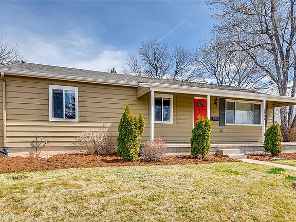 Beautifully updated open concept ranch on corner lot in coveted Cherry Creek School District. The well-appointed kitchen w/ SS appliances & granite countertops is adjoined by the living and dining areas featuring oak hardwoods & abundant natural light. The same oak flooring carries through to each of the three bedrooms on the main level while the full bath offers granite countertop and updated tile floor & tub surround. A fourth bedroom can be found in the aptly finished basement along with a 3/4 bath featuring tile shower, tile flooring & granite countertop. Also in the basement you'll find a sizeable laundry room w/ mechanical access & a home office. Want a media room or exercise area? The multi-purpose recreation complete w/ barn door for style and privacy affords flexibility to suit your needs. Don't miss the covered back patio with fenced in yard, separate dog run and access to the detached 2 car garage. Less than a mile to both bus and light rail, this house has it all.