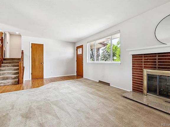 - Description: Hardwood Floors In Entry Way, Large Living Room, Carpet, Wood Fireplace