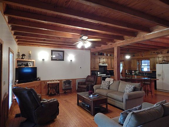 Country PARADISE!!! You will not believe this amazing 2621 sq ft 3 bedroom 3 bath home sitting atop 5 acres of luscious rolling land mixed with a lil pine and hardwood. When you enter the front door, an open concept layout will greet you with a view of living, dining and kitchen all at once..notice the beautiful tongue & groove flooring and the cypress beams and walls that adorn the entire home. An added feature throughout this home are the popular interior design barn doors ! Men!! this home has a dream place just for YOU...fantastic 40x60 building w/a 12x60 lean to and WAIT...your own "man cave" Ladies! you are gonna love the landscaping. It is way too much to list , this is a home you will have to see for yourself!! Call your Realtor TODAY!!!! Additional 25 acres are available to purchase if you want more land.