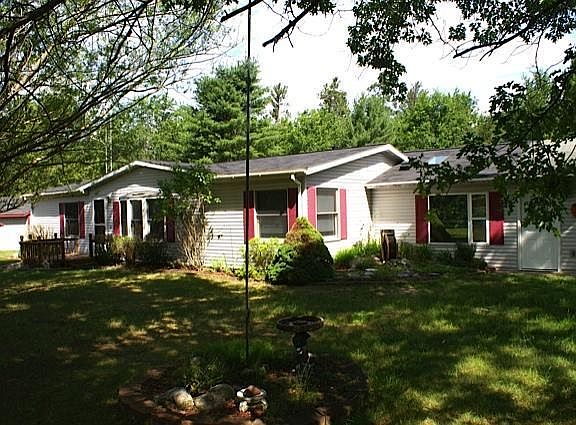Exceptionally maintained 3 BR home on 12 acres fronting a blacktop road. A beautiful mixture of hardwoods, blue spruce, red and white pines. The home offers vaulted ceilings, skylights, bow windows and french doors onto a rear deck. Master suite, bunk house, gazebo and huge garage. Property contains 5 surveyed parcels, easily dividable. Easy to show!