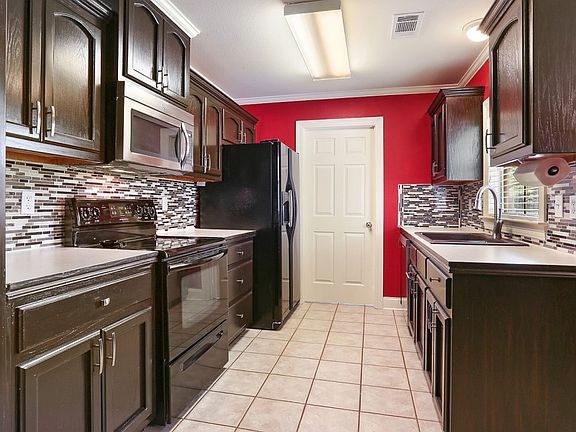 Check out this 3 bed, 2 bath home with easy interstate access! Relax on the covered patio at the rear of the home, outlooking the spacious backyard and enjoy an abundance of natural light brought in from windows throughout the home. The recently updated bathrooms give modern accents and are laid with both wood and tile. The tiled kitchen features unique backsplash detail, opening up into the combo dining area. Master bedroom offers walk in closet and crown moulding ceiling details. An enclosed double car garage makes for perfect storage.