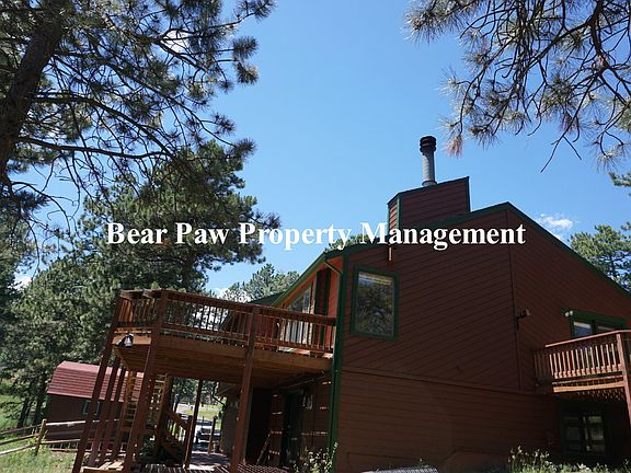 Fantastic, raised ranch mountain home with finished walkout basement on 2.3 acres of land! This home offers 4 bedrooms, 2 bathrooms, and one 3/4 bathroom. Main level has open floor plan: Great Room with wood-burning fireplace, Dining Room, and Kitchen with stainless-steel appliances and skylights. Main-floor Master with private bathroom. 2 decks, East and South exposure, off the main level offer privacy! Walkout basement has guest bedroom and bathroom, and Family Room with cozy gas fireplace that leads to covered lower patio! Watch the deer and elk graze in your own back yard! Fenced in backyard! Easy access Open Space! Close to elementary and high schools. Easy commute to Denver and the Mountains! Great Home! Will not last long!! This one is available May 1, 2025. Pets are negotiable with Owner approval!!