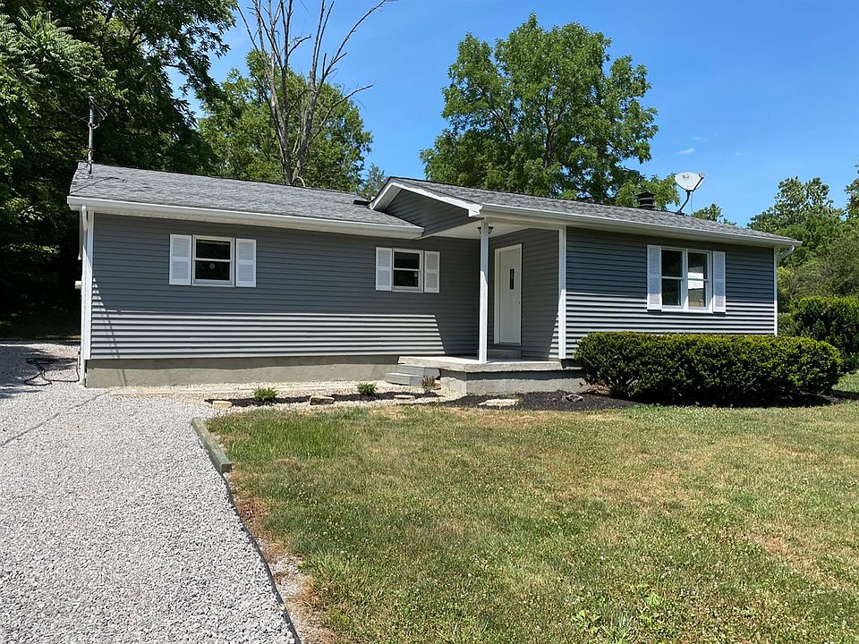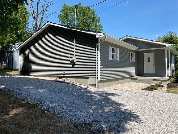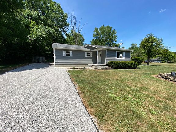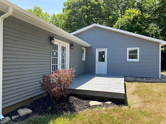Newly renovated home with all new siding and doors. New paint and carpet, gas FP, deck, pole barn and view of the creek. Extra wide driveway for additional parking on dead end street. Beautiful place to call home.