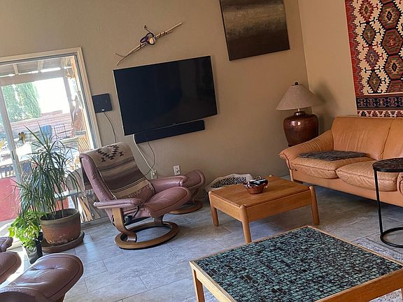 Townhome, furnished, in desirable 55+ Desert Hills V community, near GVR recreation facilities. Includes pickleball, swimming, weights rooms, arts and crafts. Rec pass available. Close to stores, restaurants, walking trails, biking and hiking. Home is spacious, detached garage is attached to neighbor, corner lot. Completely private with walled yards and courtyards. Mountain views. Backyard has ample wrap around covered patio. Plants are easy care, and watered weekly professionally. Outdoor seating, dining, BBQ, fire pit. Water feature. Home is furnished and has 2 bedrooms, however guest bedroom is reserved for landlord belongings; primary bedroom ensuite plus guest bathroom; laundry closet; kitchen/dining rooms; spacious. living room. Includes large screen TV with internet, streaming capability, local channels. Garage has space for one car, bicycle storage. Guest parking available off street. Age-retricted community; one person must be 55+. Six months rental available, 3/9/25-3/31/25; April 1-September 30, or monthly. Discounted for summer months. Lease required. One bedroom/2 baths available. Guest bedroom reserved for landlord property. Landlord pays utilities including water, sewage, outdoor watering weekly, internet, electricity, gas, trash/recycle collection. Rebate if utilities are under $300 per month, to be awarded at end of lease. Cleaning fee $100. Pet deposit and fee, if applicable, as below. No smoking of any kind anywhere on premises, includes tobacco, marijuana, candles, etc. Landlord must approve pet. Pet deposit $100, refundable; plus monthly rental fee $25. Renter is responsible for managing pet, pet barking, waste cleanup, etc. Parking available in garage for one vehicle. Guest parking in driveway or in front of home. Renter is responsible for maintaining inside and outside of home; appropriate tools are provided (starter cleaning supplies, vacuums, mop, broom, rake, leaf blower, etc). Indoor plants to be watered every 10 -14 days. Home is rented furnished; furnishings are to be left in place. Renter must agree to and follow HOA CCR rules; copy provided. Includes renter guest policy and limitations.