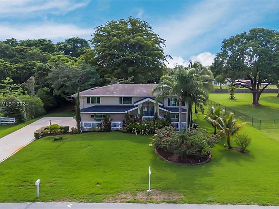 BRAND NEW ROOF COMING SOON!! Welcome to this stunning 5-bedroom, 3-bath home on FULL ACRE in Davie with No HOA! The main level includes a primary suite, 2 bedrooms, 2 baths, and an open-concept kitchen with quartz countertops, Viking appliances, and a wine bar. The lower level offers 2 bedrooms, 1 bath, a living room, game room, and storage. Features include new wood-look tile floors, all impact windows and doors, 2 new AC units, and new light fixtures and electric panels. The 1-acre lot boasts a fenced backyard, extended porch, rear patio, upper deck, 2 ½ car garage, concrete storage shed, and chicken coop. Modern amenities and fiber optic wiring throughout complete this serene home. Jacuzzi conveys!