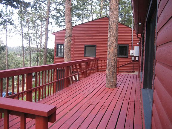 New carpet has just been installed in this sweet home located high up on a hill to capture sweeping mountain views! Large front deck takes advantage of the views and provides roomy outdoor living space. The foyer leads right to a large living room with central wood-burning fireplace, side door to fenced yard and picture windows to enjoy the mountain setting. Kitchen has new range with hood, dishwasher and refrigerator and accesses a private back deck perfect for locating the grill. Three bedrooms (one without a closet makes an ideal study) plus a full bath are on this level. Washer and dryer included. The 4th bedroom with its own bath is accessed from outside making it an ideal teen space, office or private guest area. Great condition; newer roof. Close in north Evergreen location is super quiet yet minutes away from shopping, schools and restaurants. Go the back way down Spruce!