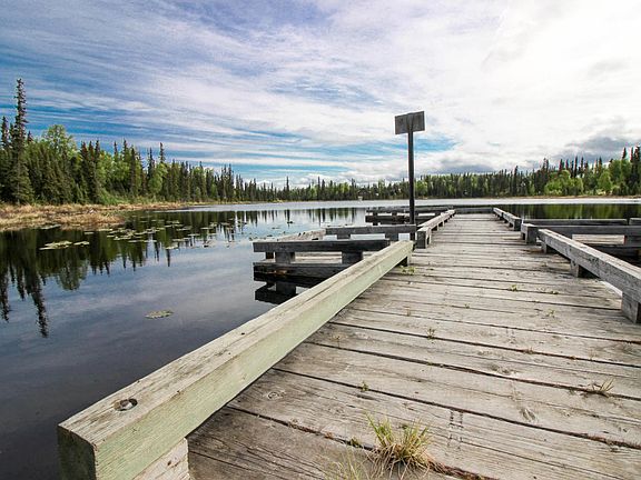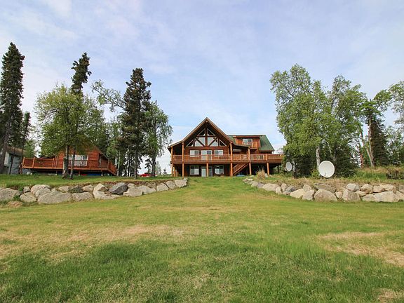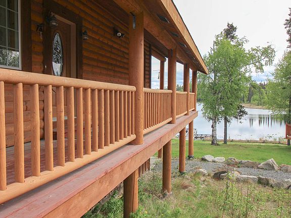 Welcome to the lake, come enjoy all things water. ATV or snow machine from your house on miles of trails. Beautiful spacious sunny log with soaring ceilings, stone fireplace, bear and eagle carving on the stairway, private master, large family room and a great deck across the back. includes a 384 sq ft mother in law suite cabin. Over looks a wonderful lake.
