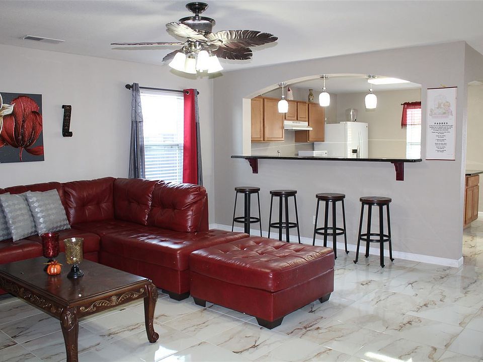- LIVING ROOM DESC: Ceiling Fan, Tile