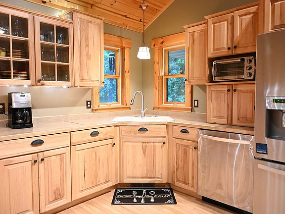 This gorgeous Luxury home features, wood vaulted ceilings, wood floors, large fireplace in Living room, open floor plan. Numerous opportunities for outdoor entertaining with open decks, private decks, covered porch, cozy fire space beautifully landscaped golfside, tar drive, wooded extra lots for privacy. 2nd garage for the toys. This is a must see property.