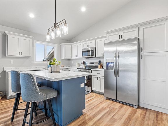 Welcome to this beautifully built 2023 corner lot home, within Madelyns Meadows neighborhood of South Fargo. Offering 4 bedrooms and 2 bathrooms, this spacious residence is perfect for comfortable family living. The open-concept upper level features vaulted ceilings, a modern kitchen with stainless steel appliances, two generously sized bedrooms, and a large bathroom complete with dual sinks. The lower level offers a family room, two additional bedrooms, a full bathroom, and a finished laundry/utility room. A heated 3-stall garage with a floor drain, and a south-facing patio accessible via a stairwell from the backyard, equipped with an irrigation system. Don’t miss the opportunity to make this move-in-ready home yours—schedule your showing today!