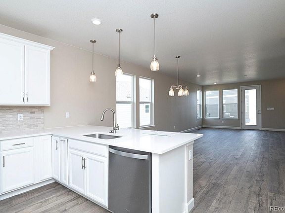 Beautiful home with great amenities and within STEAM school boundaries. Our most popular single-story home, The Aspire, features a large and spacious great room and kitchen. This home has been enhanced with upgraded plank flooring throughout. The beautiful kitchen features a large island space, beautiful cabinets and Stainless Steel appliances. The master suite features ample closet spaces, and large master bathroom shower. Expand your space with front and back patio space, perfect to relax and watch the sunset. And don't forget about the breathtaking views of the lake and the mountains as you walk around the community- you'll never forget it! We welcome you to discover KB Home at the Lakes at Centerra. A perfect place to call home. Move-in ready today.