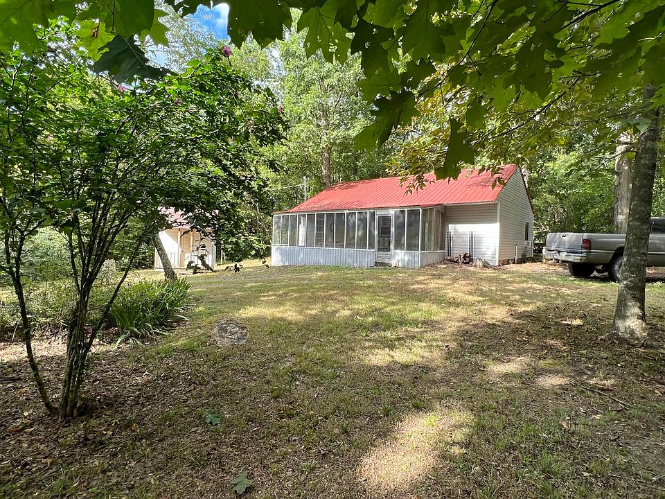 Private 5 acres with quaint cabin (actually 2 bedrooms but septic is for 1 bedroom); deer and turkey abound on this property; House has woodstove and HVAC needs repair; screen porch; eat-in kitchen; great room; 26 x 26 barn with loft, concrete floor, and 10 ft wide doors; AS IS-WhERE IS; Pls verify sf; Shared gravel driveway expense with neighbors; Approximate cost $100-$150 per year. Wooded property.