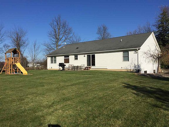 Country living at its best!! Well maintained 3 bedroom 2 bath home situated on 2.5 acre corner lot. Open concept with kitchen to feature breakfast bar and all appliances to stay. Split bedroom floor plan with large master suite and master bath offers a separate stand up shower and jetted tub. Large laundry room with washer and dryer to stay. This home offers geothermal heat. Home sits on a full basement ready to be finished and plumbed for a 3rd bath. Peace and quiet is what you will hear as you step out the patio doors off of the dining room. Bonus detached garage to store all your outdoor toys.