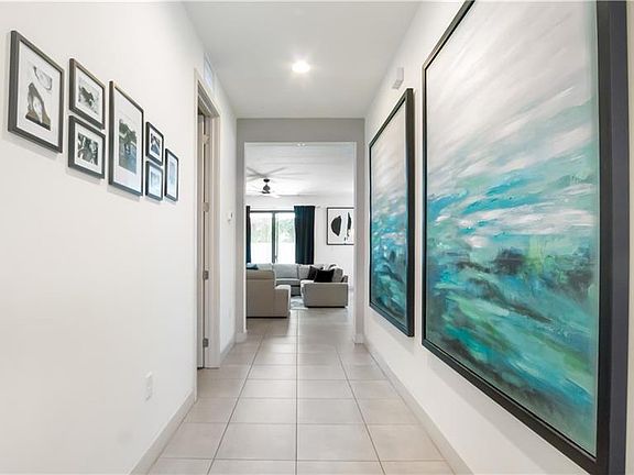 Built in 2019 this turn-key gorgeous home is tastefully styled with approximately 40K in upgrades. Split floor plan features impact windows and doors, custom walk- in closet in master bedroom, stainless steel appliances in kitchen, beautiful fixtures, 2 car garage with extended driveway, brick added on the entrance of the home, large fenced in backyard with plenty of space to add a pool, vivint camera system (new owner can activate). Located minutes away from the turnpike, shopping centers, dining, attractions and parks. Ideal family home! Virtual tour available as well.