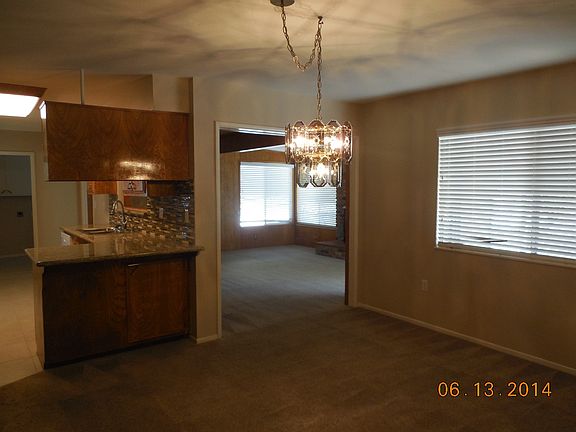 Walk into a nice sized living room. To the right are two bedrooms with large closets. Two bathrooms, one with a stand up shower and the other with a tub. Wraps around to a dining/living room and leads to the kitchen. Brand new counter tops. There is an extra living room with a beautiful brick fireplace. The backyard has 3 storage sheds, large fruit trees and some grass. The laundry room is connected to the kitchen with lots of cabinet space. Newly remodeled! For more pictures and homes, please visit www.ranchoplazarealty.com or call 951-723-1333