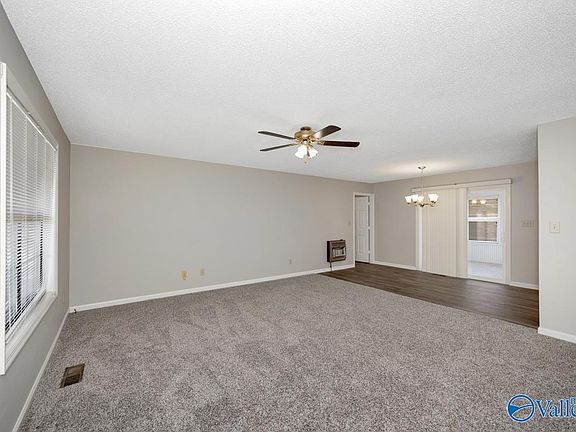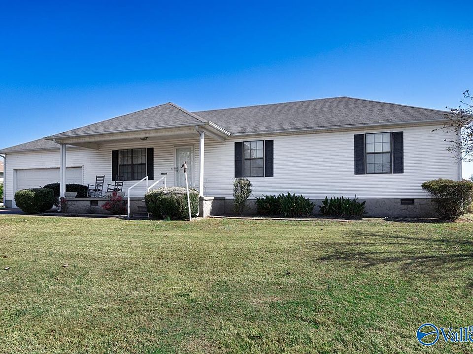 This updated 3BR/2BA 1474sf vinyl home in Little Creek subdivision just outside of Ardmore is convenient to Ardmore, Athens, Huntsville, Fayetteville, and Pulaski. The large living room and all three bedrooms have carpet for a cozy feel. With two full bathrooms, each bedroom has easy access to them. The kitchen has new luxury vinyl plank flooring, wood cabinetry, and matching appliances. The sunroom has large windows, vinyl flooring and a door that opens to the back yard where the detached garage and storm shelter are located. There is also a laundry room in the house. There is an attached front facing two-car garage and a one car detached garage. Will replace roof with acceptable offer.