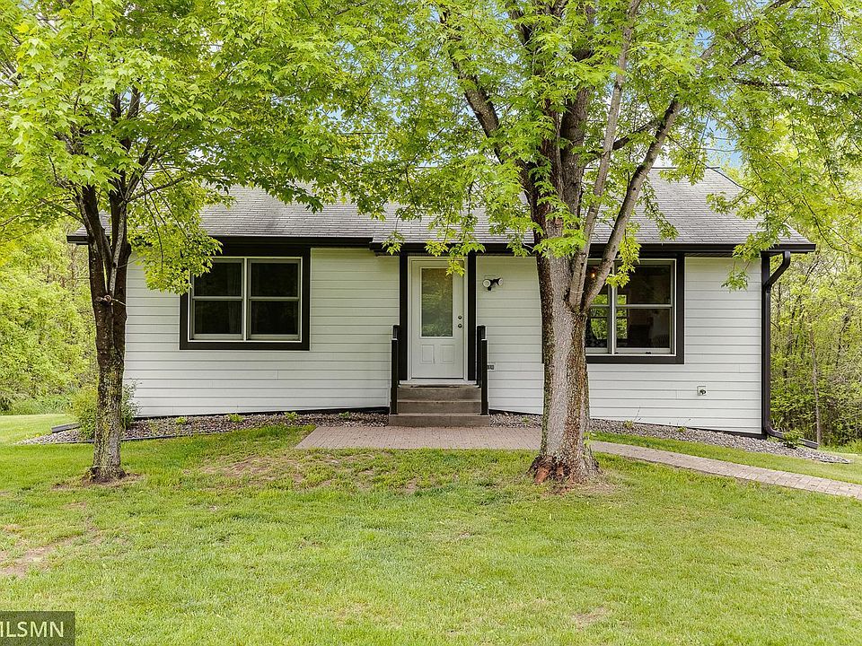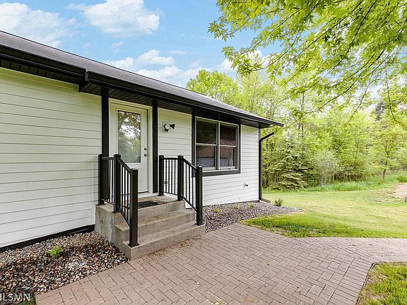 Beautifully updated and remodeled Walkout Rambler on 6 plus acres. Custom finishes throughout. Brand new custom gourmet kitchen with stainless steel appliances. Luxury plank flooring. Heated floors in both bathrooms. All new doors and trim throughout. Newer furnace and AC. New asphalt driveway and paver sidewalk. New fiber board siding. Custom tongue and groove ceilings. Updated and completely redone baths. Huge patio on the walkout side with a pergola. All of this on over 6 acres with a huge heated shop/garage. Wildlife galore right out your back door. Deer stand is also included. Yet close to restaurants lakes and shopping. This one is truly "one of a kind" and won't last long