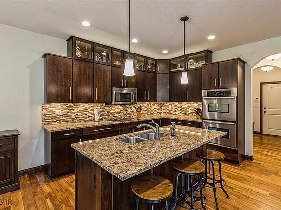 Enter from the heated 3 car garage, pass the drop zone to the center island kitchen with cabinets to the ceiling. Granite tops, tile backsplash, wine fridge, double convection oven, cook top. 4-season room just off the kitchen is next to the upper covered deck with view of the property, pond and pool. Family room w/beautiful stone fireplace entertainment wall, Hardwood floors through the kitchen, 4 season room, living room and back hall, solid-core doors, Geothermal w/dual zone controls, Primary Bedroom w/ jacuzzi, tile shower & walk-in closet. Main floor private office and 2 more guest bedrooms one with bay window. Walkout level with multiple entertainment areas dedicated pool table space, full wet bar with full size refrigerator The LL entertainment wall is stone lined and provides space for a large TV. Complete w/full bath, bedroom & access to the patio, pool, & hot tub. All information obtained from seller and public records.