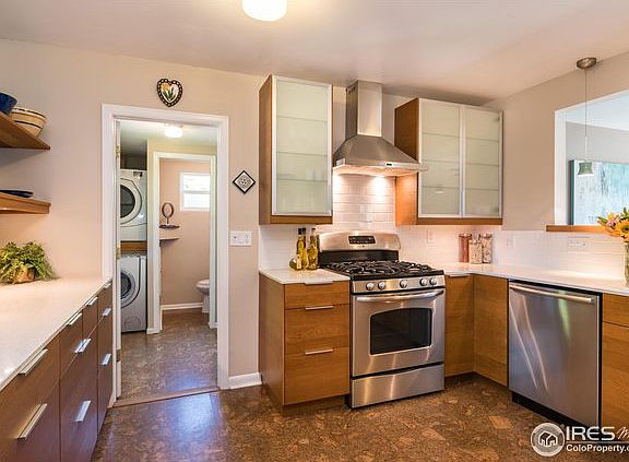 Beautifully remodeled ranch on a gorgeous lot! Kitchen w/quartz, SS, open shelving, glass front cabs & pendant lighting. 3 sunny BR. Remodeled bathrooms. Open floorplan, hardwood floors. Dining rm w/glass doors to Trex deck overlooking the delightful park-like backyard oasis w/seasonal mountain views. Bee friendly, xeriscaped front yard. Front load W/D. 1 car gar + shed. Brand new roof to be installed this month. Excellent Boulder location close to shopping, dining, and Goose Creek path.
