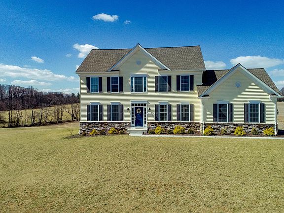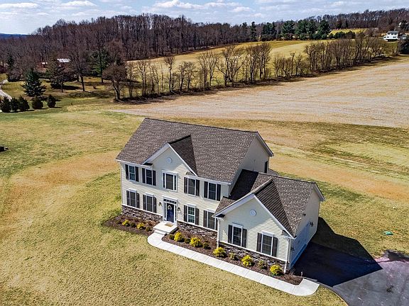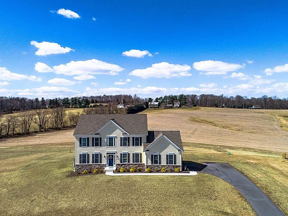 Near New Stylish chic meets country living in this young classy Colonial. Just minutes to Mount Airy and major commuter routes in South Carroll/ Mount Airy/ Winfield School District!! Nestled on nearly 2 acres with panoramic views of open farm acreage from the great room, morning room, or deck. Entry foyer draws you into a floor plan made for today's lifestyle with french doors to the front study that has plush carpeting. Rich hardwoods span the rest of the main level. Upscale appointments in every detail with oversize crown and baseline wood moldings and iron balusters in the stair railings. The seamless flow of great room with a stone gas fireplace to the kitchen and morning room are light filled, open and airy, with so much space! The kitchen is like something you would see in a magazine and dream of having for your own. Well dreams do come true! This gourmet kitchen is high end and is a chef's delight. There is custom creamy white cabinetry with built-in stainless double oven, french door refrigerator, as well as a built-in wine cooler. The center island has a deep, wide stainless steel farmhouse sink, built-in dishwasher, and custom hanging light fixtures. The gas cooktop has an arched wood carved cover for a downdraft. The expansive counters and center island are topped with gorgeous beveled edge granite and the custom tile backsplash makes a quality statement. Enjoy casual living of open floor plan that leads to outdoor entertaining on the custom built deck or entertain in the formal dining room! Upstairs private retreat in owner's suite with vaulted ceiling, dual closets and luxurious en-suite bathroom. Upstairs is complete with three additional generous size bedrooms and upscale hallway bathroom. Lower level awaits your own finishing plan with a walk-up exit. The two car attached garage enters through the laundry/ mud room with two closets. Why wait to build when your dream home is ready and waiting here! **SPECIAL FINANCING THROUGH KELLER MORTGAGE SAVES THOUSANDS**Contact listing agent for all the details!
